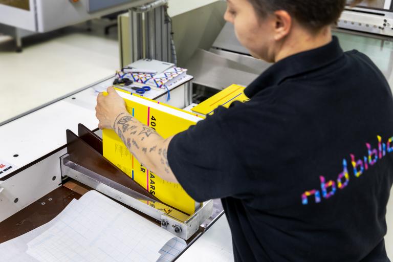 Wanneer een boek binnenkomt bij NBD Biblion, ziet het er net zo uit als in een boekhandel. Mediatheekboeken moeten tegen een stootje kunnen. Daarom wordt bij ons de omslag en de rug van de boeken eerst verwijderd. Het boek krijgt extra schutbladen en een nieuwe rug. Deze rug wordt bevestigd met vinyllijm (koudlijm) waardoor de rug niet kan breken.