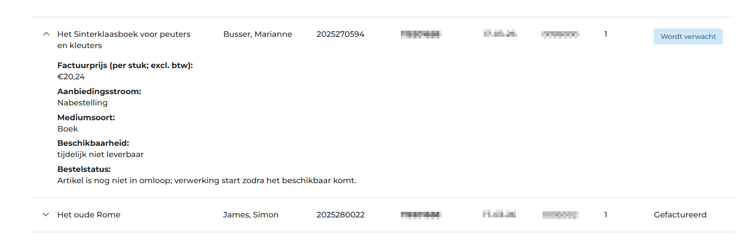 Elke regel in de bestelhistorie is een aparte bestelregel.